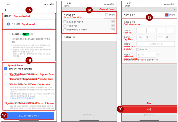 #19~20. Fill in your Card information and click ‘Next’ process your payment